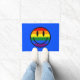 Este trabalho de arte colorido apresenta um smiley face arco-íris.