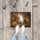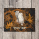 Este par de corujas brancas de neve faz a pergunta "Quem está lá" na sua porta. São festivos para o Halloween em creme contra laranja e preto, mas são genéricos o suficiente para trabalhar durante toda a época da colheita. Estas corujas-vintage estão poleiradas contra as damascos cor de laranja e os restos fantasma das folhas do outono. Este design pode ajudar a colocar-vos no clima para folhas estaladiças, sidra quente picada, abóboras, ar mais fresco e estação de outono. As corujas são de uma ilustração botânica antiga no dominio público. O texto diz "Quem está lá", mas você pode personalizá-lo, por exemplo, se preferir seu nome ou um slogan diferente.
