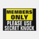 Membros Somente por favor Use o Knock Secreto - isso pode funcionar como um tapete de porta sério se você estiver hospedando a reunião mensal para o seu capítulo local do Illuminati. Ou pode ser um tapete de novidade engraçado na porta da sua velha casa para dizer a companhia indesejada e aos advogados que podem bater até que os seus dedos sangrem, mas não os deixaremos entrar.