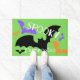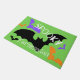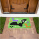 O tapete da porta do Spooky Bats Green tem gráficos vívidos que acrescentam ao seu decor de Halloween.