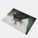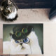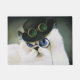 Retrato de gato siamês longo e cabeludo vestindo um chapéu de boi com óculos e um monóculo de vidro.