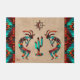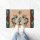 Este é um "Um dos tipos" do sudoeste de Kokopelli Doormat! Ele apresenta dois Kokopelli tocando flauta e dançando em volta de um cacto sob o sol em um fundo de bronzeado... cercado por uma borda sudoeste em Turquesa, Laranja e Negro! Esta é uma Design de Arte Original do Artista Kerry Miller.