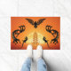 Combinação de cores Vivid do Rug Doormat Kokopelli no Sudoeste de Phoenix que você pode personalizar as cores de fundo para combinar com a sua decoração. Culturas indígenas nativas americanas de Kokopelli. Atribuído a aliens antigos ou arte tribal e inspirado em desenhos de cavernas e rochas. Personalize as cores e estilos do tapete de porta nativo americano do Estilo Sudoeste. ideia de presente de excelente.