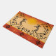 Kokopelli Doormat ou tapete de cozinha do sudoeste. Combinação de cores vívidas que você pode personalizar as cores de fundo para corresponder à decoração. As culturas indígenas nativas americanas de Kokopelli dizem que KoKo se saudou em sementes, primavera e fertilidade. Imagem maravilhosa à sombra de amarelos vívidos, e silhuetas de kokopelli. Atribuído a aliens antigos ou arte tribal e inspirado em desenhos de cavernas e rochas. Personalize as cores e estilos do tapete de porta nativo americano do Estilo Sudoeste. ideia de presente de excelente.