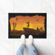 Sudoeste do Sol no deserto Kokopelli Rug Doormat. Cavalos, lobos e paisagens de corvos. Combinação de cores vívidas que você pode personalizar as cores de fundo para corresponder à decoração. Culturas indígenas nativas americanas de Kokopelli. Atribuído a aliens antigos ou arte tribal e inspirado em desenhos de cavernas e rochas. Personalize as cores e estilos do tapete de porta nativo americano do Estilo Sudoeste. ideia de presente de excelente.