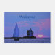 Bem-vindos a um porto seguro, quando alguém está navegando para uma visita. O veleiro cênico e o farol apareciam no tapete esturpido de porta de boas-vindas.