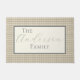 Adicione um toque de charme à sua porta. Este cheque de gingham vai fazer isso! Esta porta pode ser personalizada com um endereço de rua, sobrenome ou ditado especial - qualquer coisa que você quiser! Bonita em sua própria ou camada com uma porta maior em uma de nossas impressões de coordenação para encanto extra. Faz um presente excelente para o lar! Gingham, cheque, clássico, tradicional, sábio, verde, mudo, macio, neutro, estilo de chalé, país inglês, tapete, costume, personalizado, padrão, aquecimento doméstico, presente.