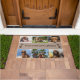 Mantenha seus andares limpos e mostre seu amigo peludo com uma porta personalizada para cão! Este lindo tapete mostra as pegadas e as fotos do seu cão, um monte delas seis, então seus convidados saberão exatamente quem as cumprimentará na porta. É também uma forma excelente de impedir que a sujeira e a lama entrem na sua casa. Limpe suas patas, por favor! em uma fonte encantadora e escrevendo de mão flanqueada por impressões bonitas de pata em branco no bege. Mostre o seu cão ou cães no modelo fotográfico de seis fotos.