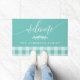 Téal E Búfalo Branca Verificam Bem-Vindo Porta Personalizada. Personalize este design personalizado com o seu próprio nome de família.