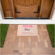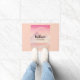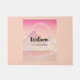 Bem-vinda à porta com uma bela ilustração encantadora. Pastel de cor rosa e pêssego. Paisagem com planetas, montanhas e nuvens.