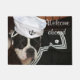 O terrier preto e branco de Boston com "boa vinda a bordo" da mensagem, cão está vestindo o equipamento do marinheiro. Sinta por favor livre adicionar, mudar, ou remover o texto se você gosta.