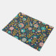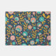 Características deste design da arte popular um teste padrão floral do rosa, da laranja e da cerceta em um fundo azul escuro.