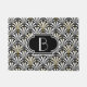 Reprodução de um clássico, esteira de Digitas de porta do teste padrão do fã do art deco com monograma - branco no preto, embellished com ouro