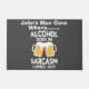 Adicione humor às suas bebidas com este humorístico design de sarcasmo de caverna branco, com a frase "O Álcool Vai em Sarcasmo Sai". O texto branco em negrito traz uma vibração para os adultos. Perfeito para encontros sociais ou para melhorar a sua decoração com um toque pessoal. Personalize este modelo e/ou edite-o com ferramentas design para uma aparência distinta.