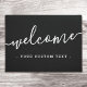 Porta de boas-vindas a cores preta ou personalizada com o texto "bem-vindo" e o texto personalizado abaixo.