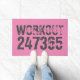Texto vestido e arranhado Workout 247365 em cor de cinza com fundo rosa. Perfeito para qualquer pessoa que esteja levantando, malhação, treinando, construindo carrocerias e indo para a academia.