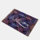 Textura diagonal do tecido e folha de ouro Bem-vindos Um presente de excelente para recém-casados ou novos proprietários. Este clássico tapete de porta de boas-vindas roxo, marinho, rosa e preto, com textura tecido e diagonal contínua mostra "Bem-vindo" em letras modernas com o nome da sua família e o ano abaixo. Uma grande borda completa a design.