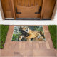 Este tapete de porta tem uma fotografia de um belo tigre.