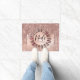 Um tapete moderno, chic, moderno, Rosa Dourado da porta de negócios. Design apresenta pílulas de falso brilho, conjunto de unhas, fundo de brilho brilhante e script de tipografia. Personalize com seu nome na frente.