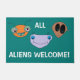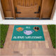 Este é um divertimento e o doormat colorido com os três aliens bonitos projeta e o provérbio "TODA A BOA VINDA dos ALIENS!"
