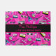 Bonita e moderna, esta porta apresenta um padrão divertido do estilo dos anos 80. Apresentando um fundo cor-de-rosa com instrumentos musicais coloridos, palmeiras, óculos escuros, etc. Há uma caixa cor-de-rosa e amarela no meio que diz o nome da sua família "...uma família de quadril e moda". Personalize o seu hoje!