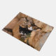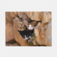 Três filhotes miúdos a espreitar de um buraco de parede rochosa com olhos rezados. Eu tirei a foto desses lindos gatos numa ilha grega, este tapete de porta é uma ideia de presente para amantes de gatos. Fotografada por Katho Menden. http://www.zazzle.com/kathom_photo