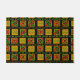 Esta porta tem um design de História Negra de círculos, triângulos, diamantes, linhas e ziguezags formando um padrão.
