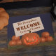 O truque de boas-vindas ou tratadores Pumpkins e esta porta é a que dá as boas-vindas a este Halloween.