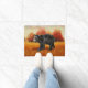Um Urso Negro giro dando uma volta por um campo de folhagem clara de cor de queda.