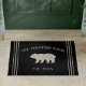 Bem-vindos convidados para a sua casa com esta charmosa porta de cervejaria que é perfeita para a sua cabana ou casa de campo. O design personalizado apresenta o nome da sua família em caracteres neutros que em caracteres, juntamente com o seu ano estabelecido e uma ilustração de urso. A faixa de cordas detalhando sobre um fundo preto rico completa a design.