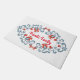 Este design escandinavo apresenta um padrão de arte folclórica floral feito no estilo tradicional de pintura de lona roseminal escandinava. A borda à volta da frente do cartaz tem um design azul de espiral com cinzas amarelas e flores vermelhas em um fundo branco. Este tapete de porta coordena-se com a "Velkommen" Home Collection e adiciona boas-vindas à sua entrada.