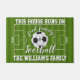 Esta porta personalizada é perfeita para a família dos adeptos de futebol. Há uma formação no campo de futebol com um futebol ilustrado no centro. Personalize esta porta com seu nome de família na parte inferior OU tire essa parte para deixar o vazio inferior. Um presente de excelente para dar a uma família que é fã de futebol ou um presente de família para se mudar para uma nova casa.