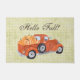 O excelente de outono/outono do país design apresenta a ilustração aquosa de um caminhão laranja vintage cheio de abóboras de colheita, texto personalizável "Hello Fall!" num fundo com padrão neutro angustiado