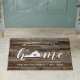 Mostre algum orgulho do estado de casa com esta fofa porta de prancha de madeira rusticada apresentando "home" em cartazes com script de caligrafia branca com um mapa da silhueta do estado de Virgínia em pé para a letra "O". Um dentro cor-de-rosa para ilustração cardíaca no mapa do estado completa o design; você pode mudar a posição do coração para sua cidade natal abrindo a ferramenta design e arrastando a forma do coração para seu lugar favorito. Personalize com sua cidade natal, seu nome familiar e ano estabelecidos para criar um toque perfeito para sua porta dianteira, ou um presente memorável de inauguração de casa.
