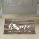 Mostre algum orgulho do estado doméstico com esta fofinha porta de prancha de madeira rusticada apresentando "home" em cartazes com script de caligrafia branca com um mapa da silhueta do estado da Califórnia em pé para a letra "O". Um dentro cor-de-rosa para ilustração cardíaca no mapa do estado completa o design; você pode mudar a posição do coração para sua cidade natal abrindo a ferramenta design e arrastando a forma do coração para seu lugar favorito. Personalize com sua cidade natal, seu nome familiar e ano estabelecidos para criar um toque perfeito para sua porta dianteira, ou um presente memorável de inauguração de casa.