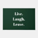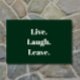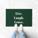 Finalmente, um ditado inspirador para os introvertidos entre nós. "Viva. Ria. "Sair" proclama esta porta humorística, que é para introvertidos, antissociais, e socialmente constrangedores, que recebem convidados com um pouco de relutância e talvez até alguma ansiedade. Uma tipografia branca simples e moderna num fundo verde clássico de floresta. Inesperado, peculiar e um pouco sarcástico, esta porta engraçada é perfeita para aqueles que apreciam o humor escuro e seco e não têm medo de compartilhá-lo com seus visitantes (que esperam que saiam em breve).