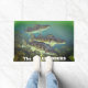 Três pike walleye nadando estão neste tapete de porta de peixe resistente e facilmente personalizado.