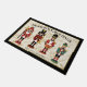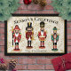 Porta do Invólucro Personalizado - Seasons Saudações Bem-vindos convidados em estilo festivo com esta porta personalizada do Invólucro Noz. Quatro charmosos soldados Nutcracker estão orgulhosamente no centro desta design, colocados contra um fundo bege profundo com folhas e bagas ocas. O topo do tapete apresenta as palavras "Saudações da Época", enquanto o fundo oferece um espaço para personalização, fazer-o como um acréscimo exclusivo ao seu decoro de feriado. Perfeito para as entradas, esta porta adiciona um toque de magia e calor tradicionais de Natal à sua casa.