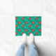Porta em uma cor damasco floral de William Morris de flores e folhas anêmonas, melhorada digitalmente e colorida - folhas de tartaruga/pavão, e flores em tons de vermelho profundo e coral em um fundo verde-escuro