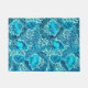 Doormat em um teste padrão de matéria têxtil de Nouveau da arte de William Morris, digital aumentado e colorido - peônias estilizados e folhas nas máscaras do azul de índigo, de azuis cobaltos, e da turquesa escuros, contra um fundo claro do aqua