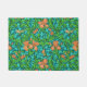 Porta de um William Morris, Art Nouveau, impressão de irítos e folhas têxteis, melhorada digitalmente e colorida, em laranja, verde limão e aqua macio de mandarina, num fundo de turquesa profundo / tétano