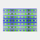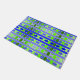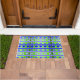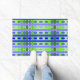 Esta porta tem um design geométrico de linhas em tons azuis e verdes tecidos para fazer uma xadrez.