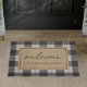 Adicione um toque no estilo da fazenda à sua entrada com esta porta de rola xadrez de búfalos, padronizada em bege escuro e preto com sotaques bronzeados. "Bem-vindo" aparece no centro em letra casual de script manuscrito; personalize com seu nome de família embaixo.