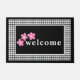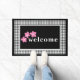 Dê boas-vindas aos convidados em sua casa com este tapete de porta em estilo de fazenda moderna com um clássico desenho xadrez de búfalo preto e branco, flores simples que podem ser alteradas para qualquer cor que você precise e texto personalizado que diz "Boas-vindas". Este design é moderno e simples e será um ótimo complemento para sua casa, pátio ou varanda, ou um presente único para familiares ou amigos. Modifique a área de texto e a cor das flores para atender às suas necessidades de decoração ou presente.