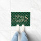 design de porta de Natal moderno, que apresenta uma elegante inscrição manuscrita em ouro falso, uma bela rena, um fundo de xadrez de búfalos preto e verde. Um presente de Natal perfeito para novos proprietários ou recém-casados.