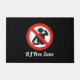 Nenhum sinal de aviso de zona de dj para músicos e clubes de música ao vivo. Texto personalizado.