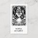 Cartão de visita de enfermeira do tema Tarot com esqueleto de enfermeira em um fundo preto.