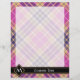 Design de cor rosa, ouro amarelo e azul-tartan. Um padrão perfeito. Texto personalizado e monograma.