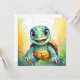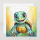 Um quebra-cabeça de tartaruga-do-mar-chibi fofo apresentando uma tartaruga-do-mar-cartoon nadando sob o mar em amarelo e verde.