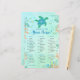 Este cartão de jogo de chá de fraldas é O que há na sua bolsa? A design apresenta uma tartaruga fofa sob o design do mar sobre um fundo de aquarela. Personalize a parte traseira das cartas com um nome. Produtos correspondentes disponíveis.